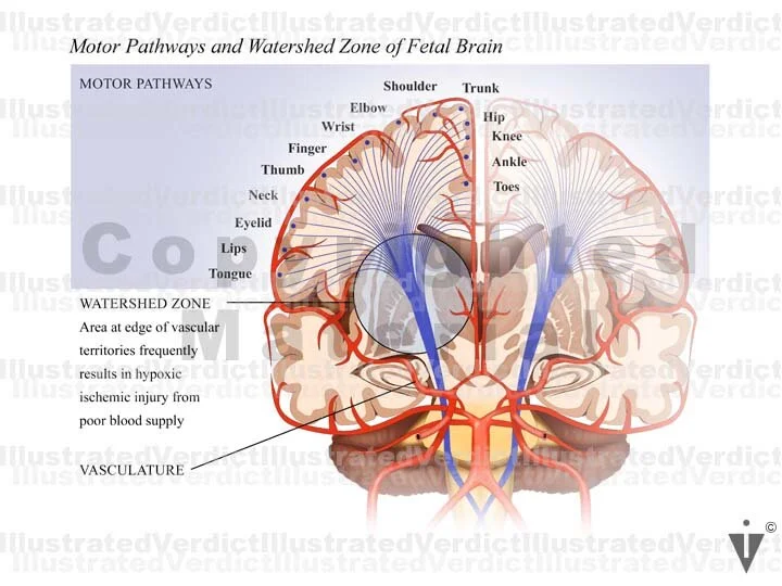 1. Motor pathways and watershed zone of premature fetal brain