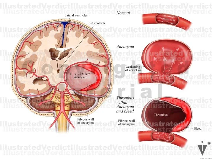 1. Lateral view of brain with arteries and left internal carotid artery aneurysms
