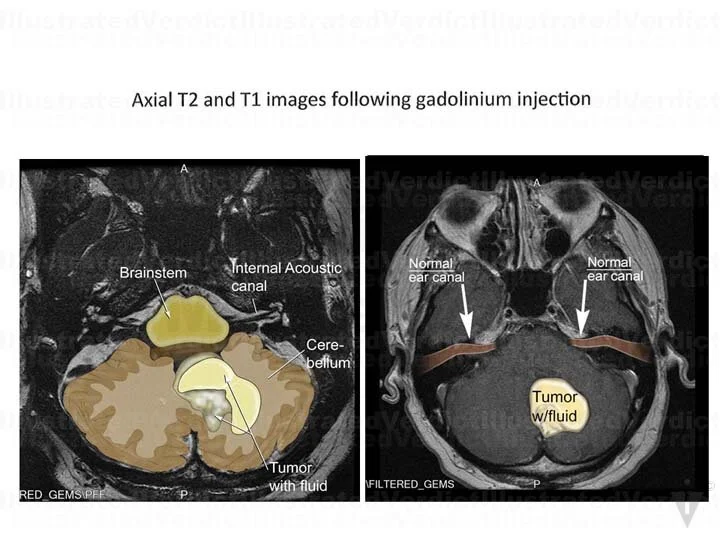 1. Example film colorization of tumors near brainstem and ear canal