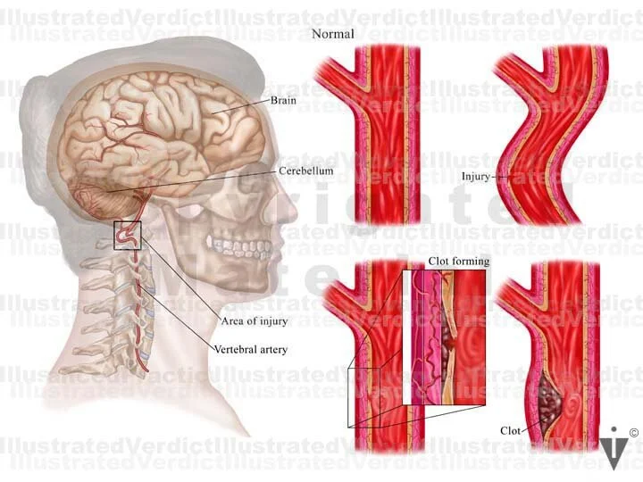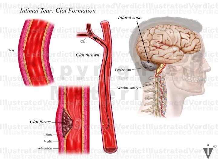 3. Detail of vessel with clot formation: should be acute pain associated with injury and clot due to innervation