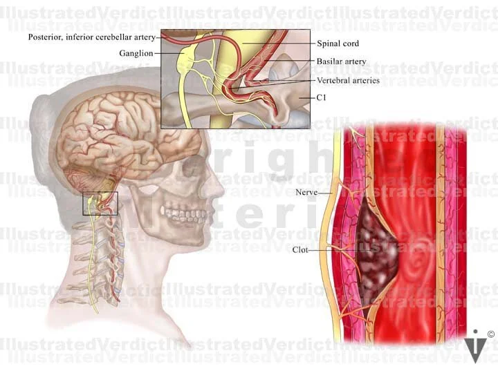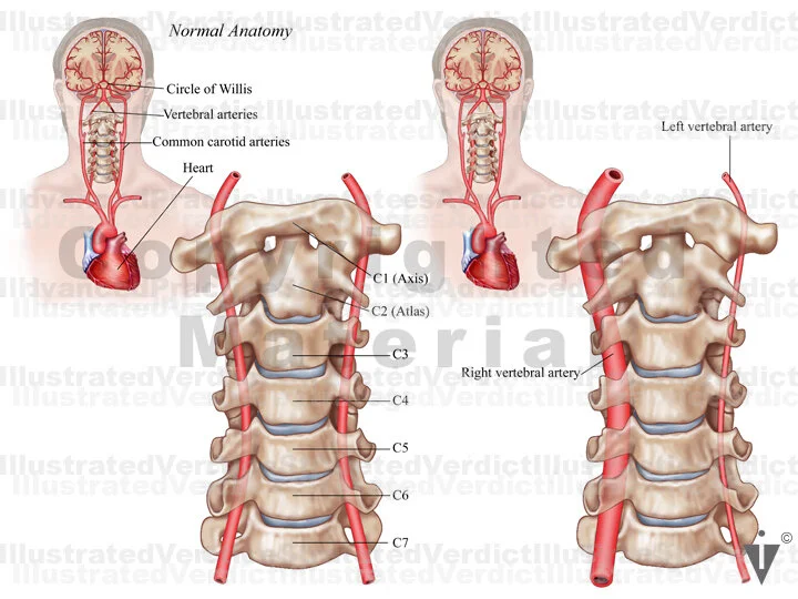 3. Orientation view with large right vertebral artery and small left vertebral artery