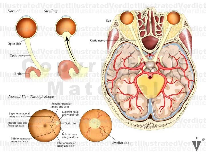 5. Transverse section: brain with vasculature, eyes and optic nerve