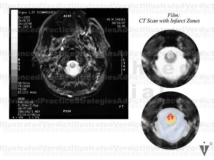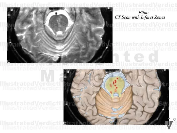 2. Enhancement of textbook example showing large infarct area in cerebellum