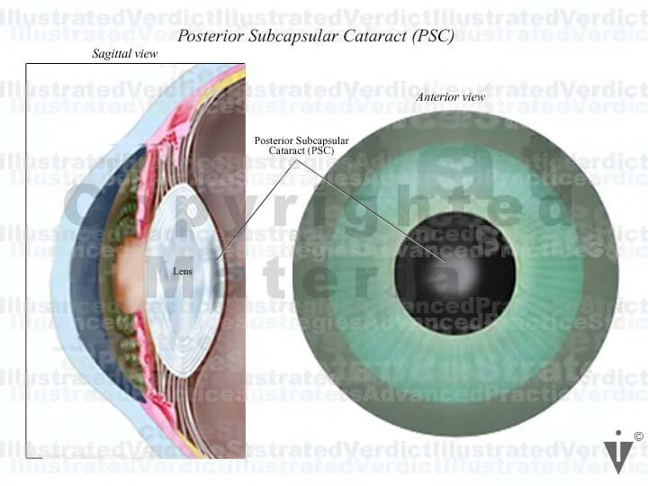 1. Sagittal view: posterior subcapsular cataract (PSC)