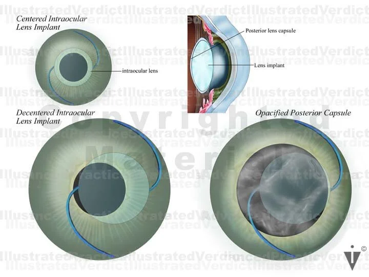 4. Opacified posterior capsule with decentered intraocular lens implant