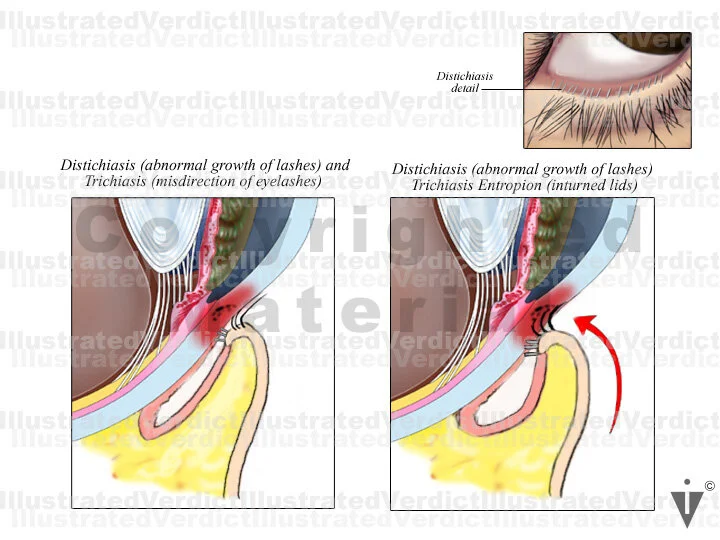 2. Distichiasis (abnormal growth of lashes) and trichiasis entropion (inturned lids)