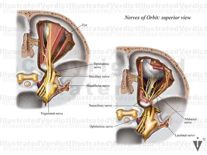 1 - 2. Superior view: nerves of orbit
