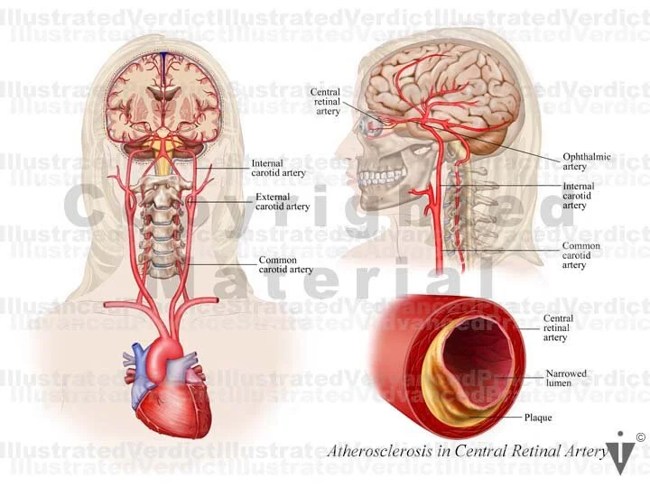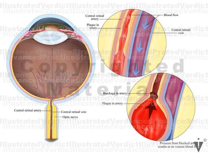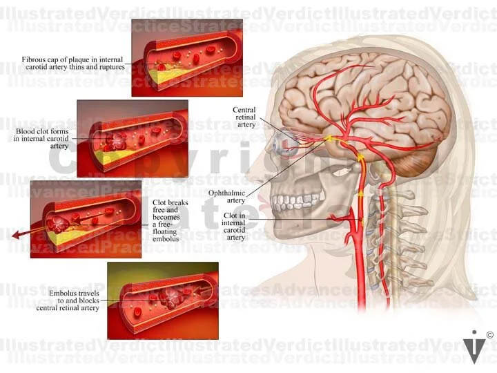 5. Embolus travels to and blocks blood flow in central retinal artery