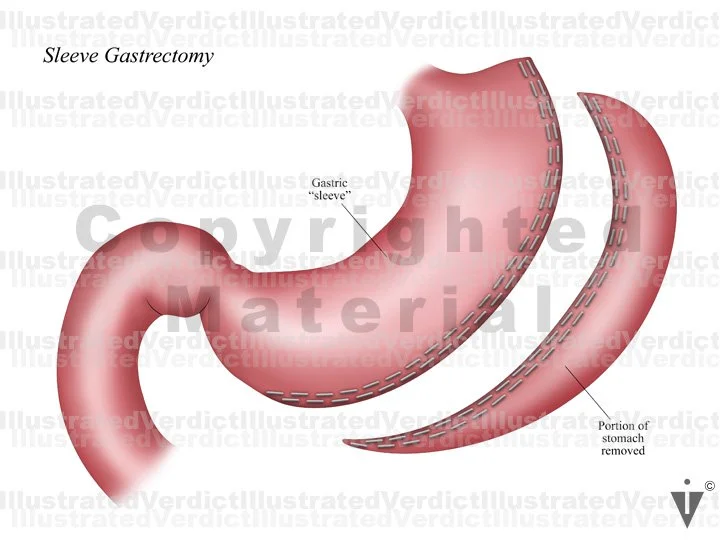 1-4. Gastric bypass where sleeve is created for bypass anastamosis