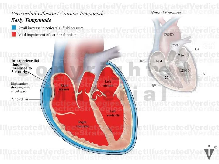 1. Early tamponade: pericardial effusion / cardiac tamponade