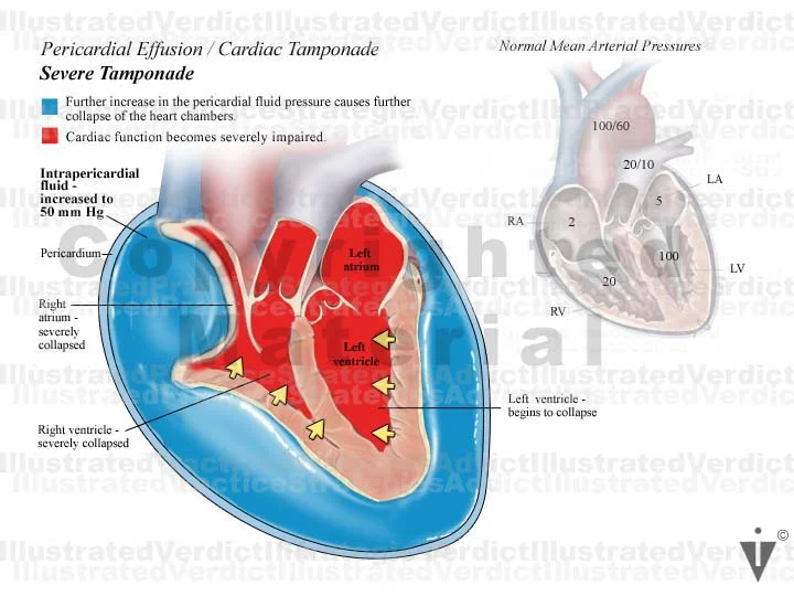 1. Severe tamponade: pericardial effusion / cardiac tamponade