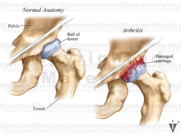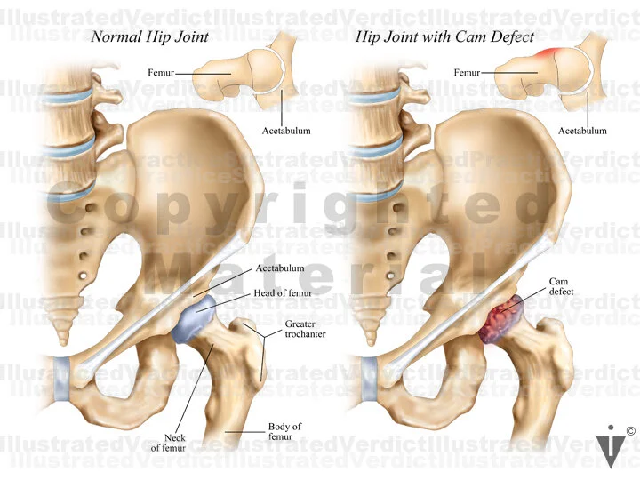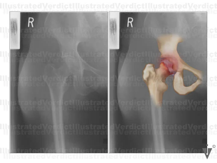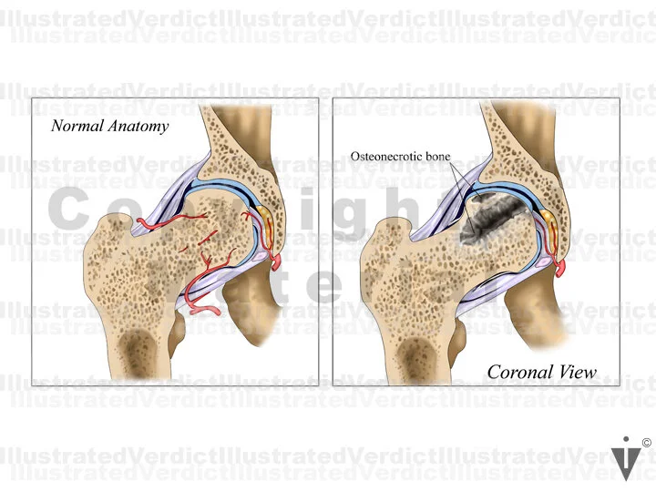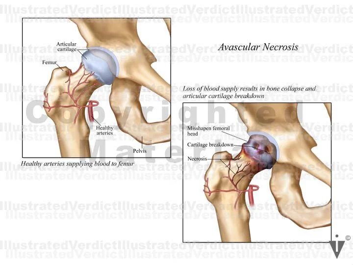 2. Avascular necrosis resulting in malshapen femur and loss of cartilage