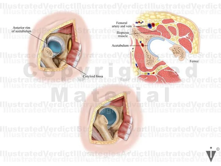 2. Cross section view: osteotomy of femoral neck and head exposing acetabulum