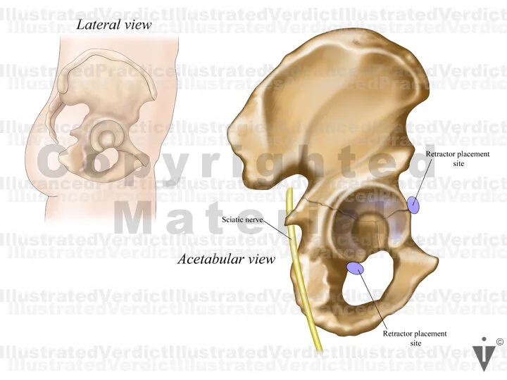 2. Acetabular view: relationship of retractor placement to sciatic nerve