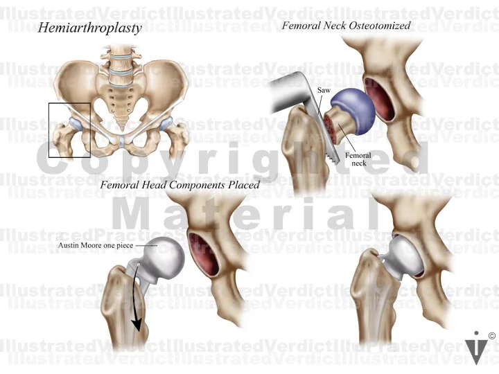 3. Left hip bipolar replacement of femoral neck fracture: placement of femoral prosthesis