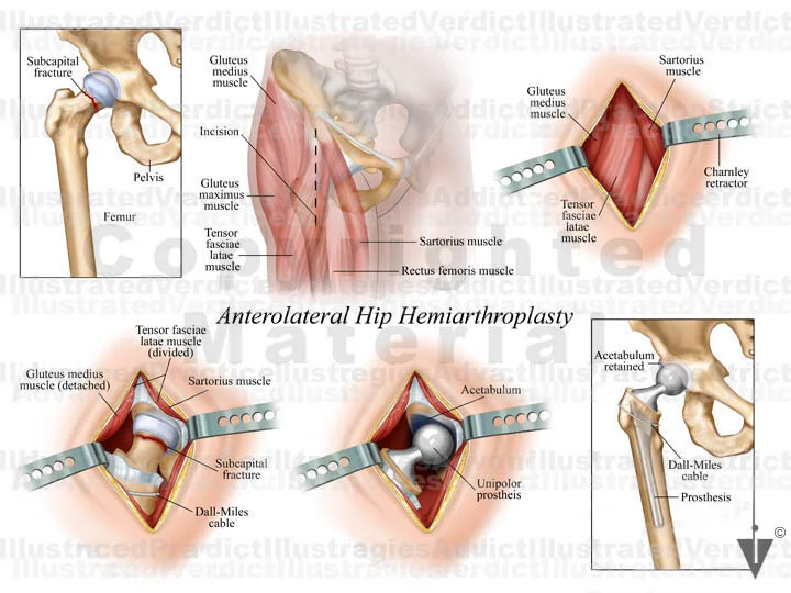 1. Left hip bipolar replacement of femoral neck fracture: Type IV Fracture