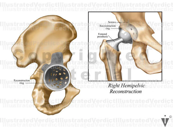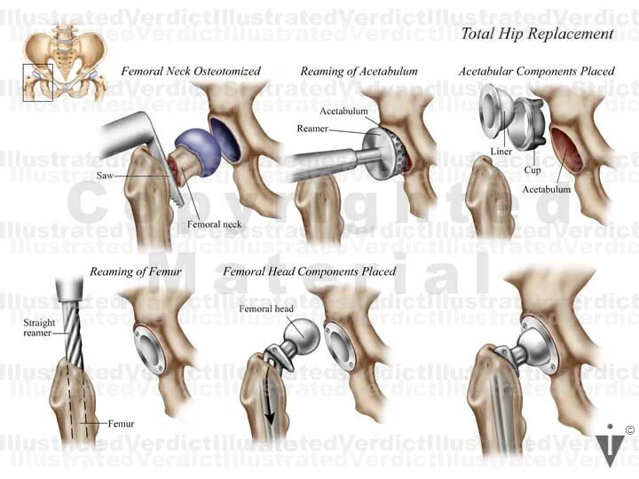1. Osteotomy of femoral neck and head exposing acetabulum
