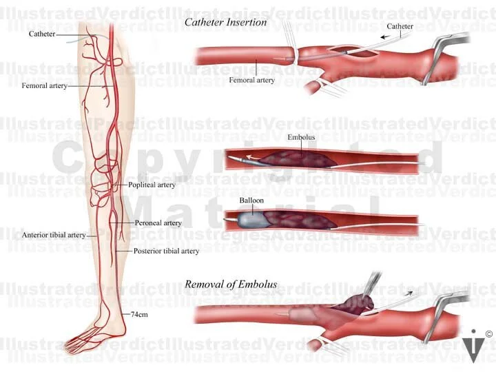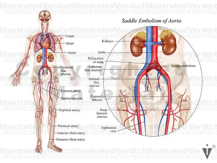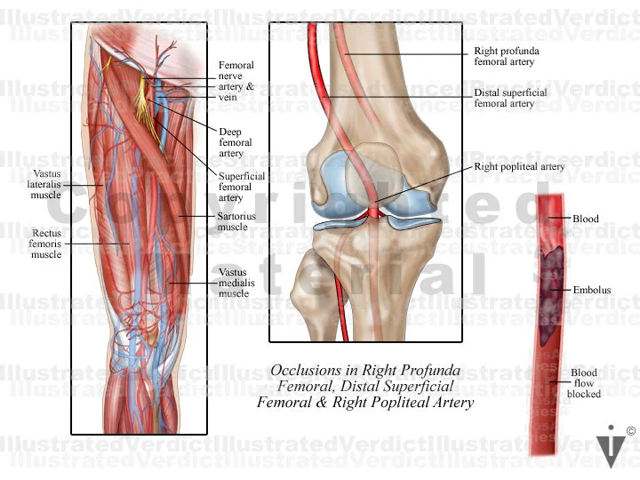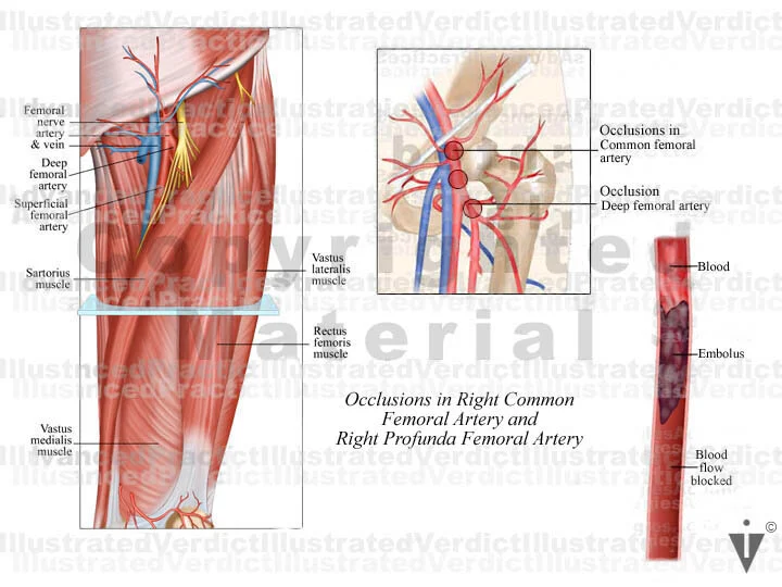 3. Detail: blood flow blocked from embolism in right common and deep femoral arteries