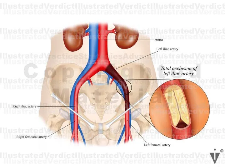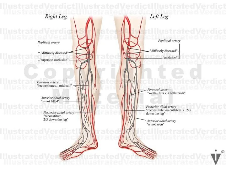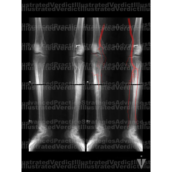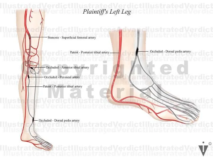 1. Obstructed arteries of a plaintiff's left leg; anteromedial view