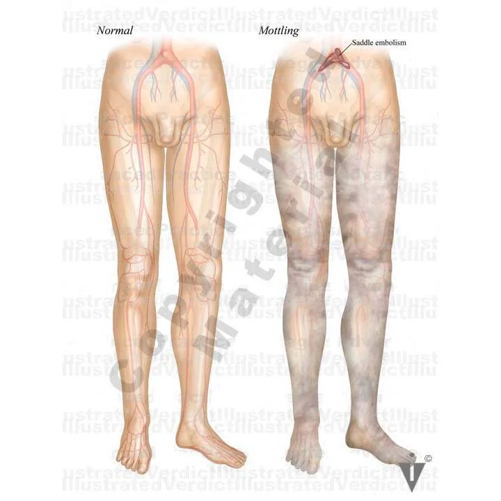 2. Arterial embolism and mottling skin of the legs; anterior/anteromedial view