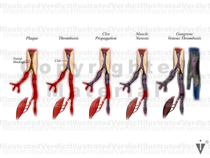 - Clot blockage approximately 75% of artery, causing muscle necrosis