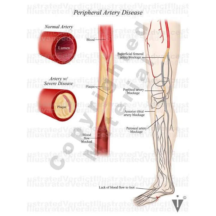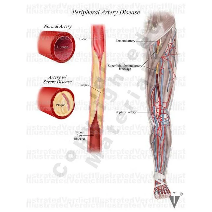 1. Comparison between a normal blood vessel and a blood vessel with peripheral artery disease in the right leg