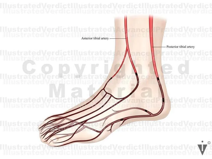 3. Blockage of arteries of the lower limb causing lack of blood flow to foot; anteromedial view