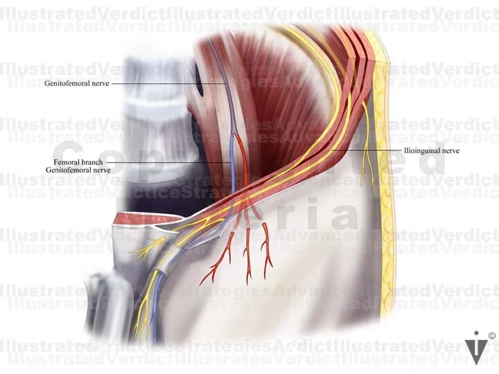 2. Orientation: Upper thigh and pelvic nerves; anterior view
