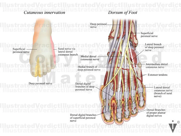 1. Cutaneous innervation of sural and peroneal nerves; anterior view
