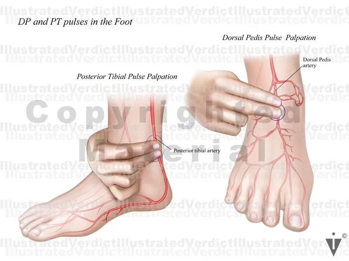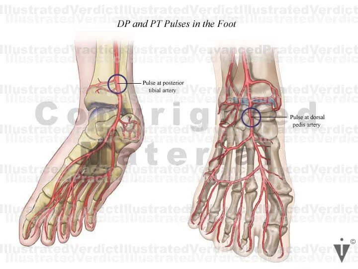 2. Pulse at dorsal pedis artery: anterior view