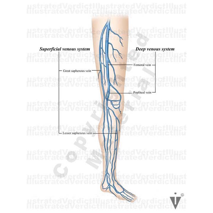 1. Superficial and deep venous system of the leg: anterior/anteromedial view