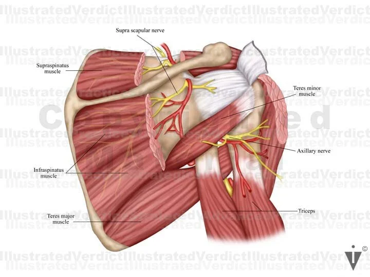1. Posterior view of shoulder: innervation to scapular muscles