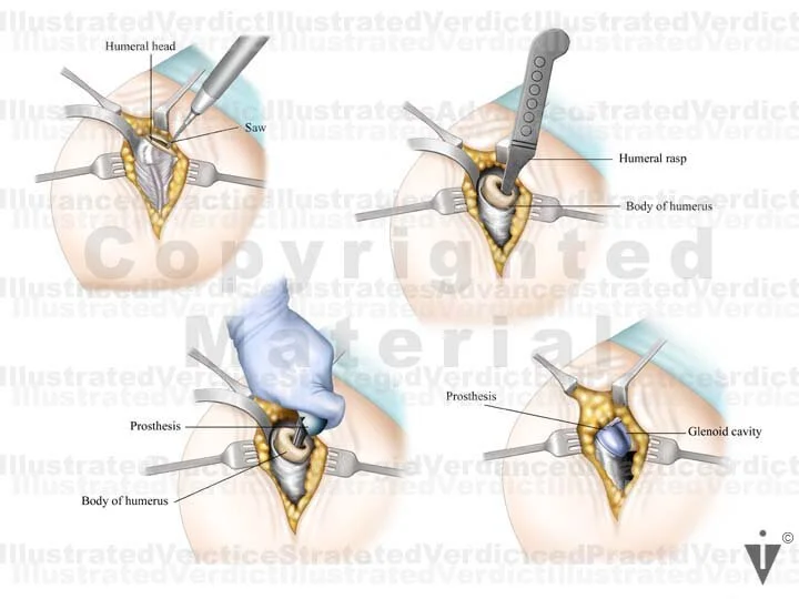 5. Surgical view: prosthesis superimposed upon proximal humerus, used to plan humeral neck osteotomy