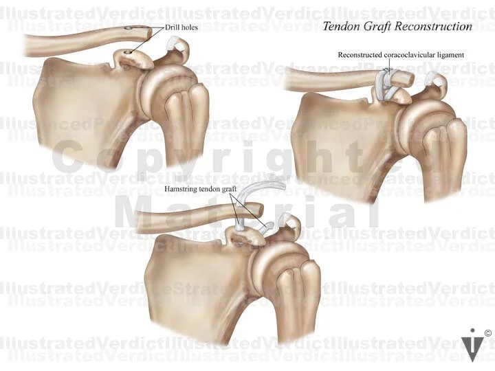 1. Tendon graft reconstruction (4/15/98): drill holes in clavicle and coracoid