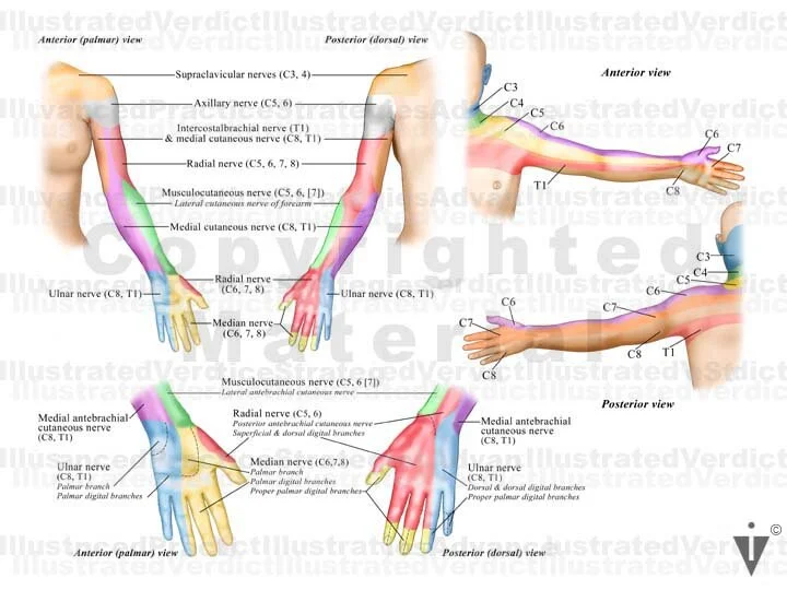 3. Posterior (palmar) view: cutaneous innervation of forearm and hand