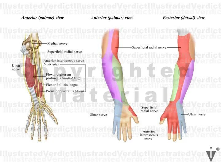 2. Anterior (palmar) view: cutaneous innervation of forearm and hand